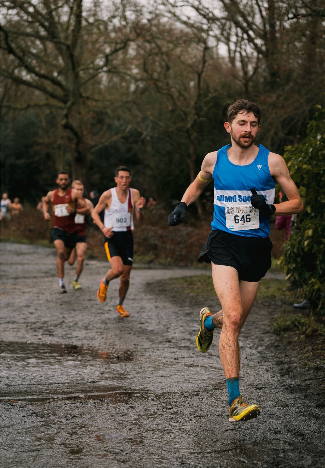 Check out this video of the start and finish of the recent men’s race in the Surrey League Division 1 cross-country fixture held at Mill Lane in Hurst Green.