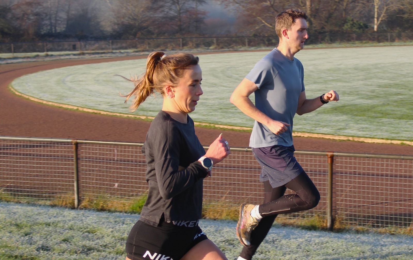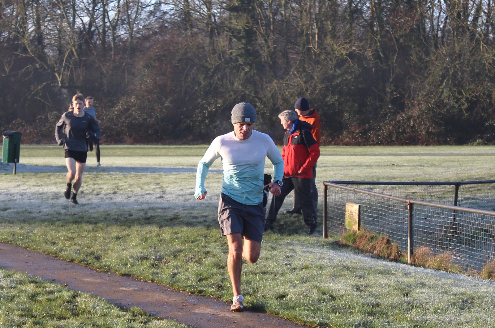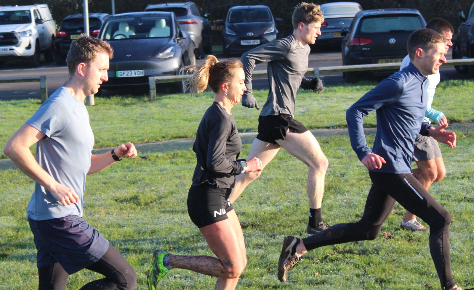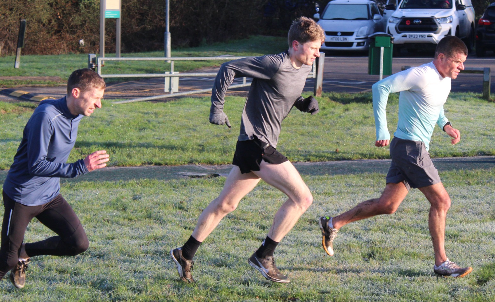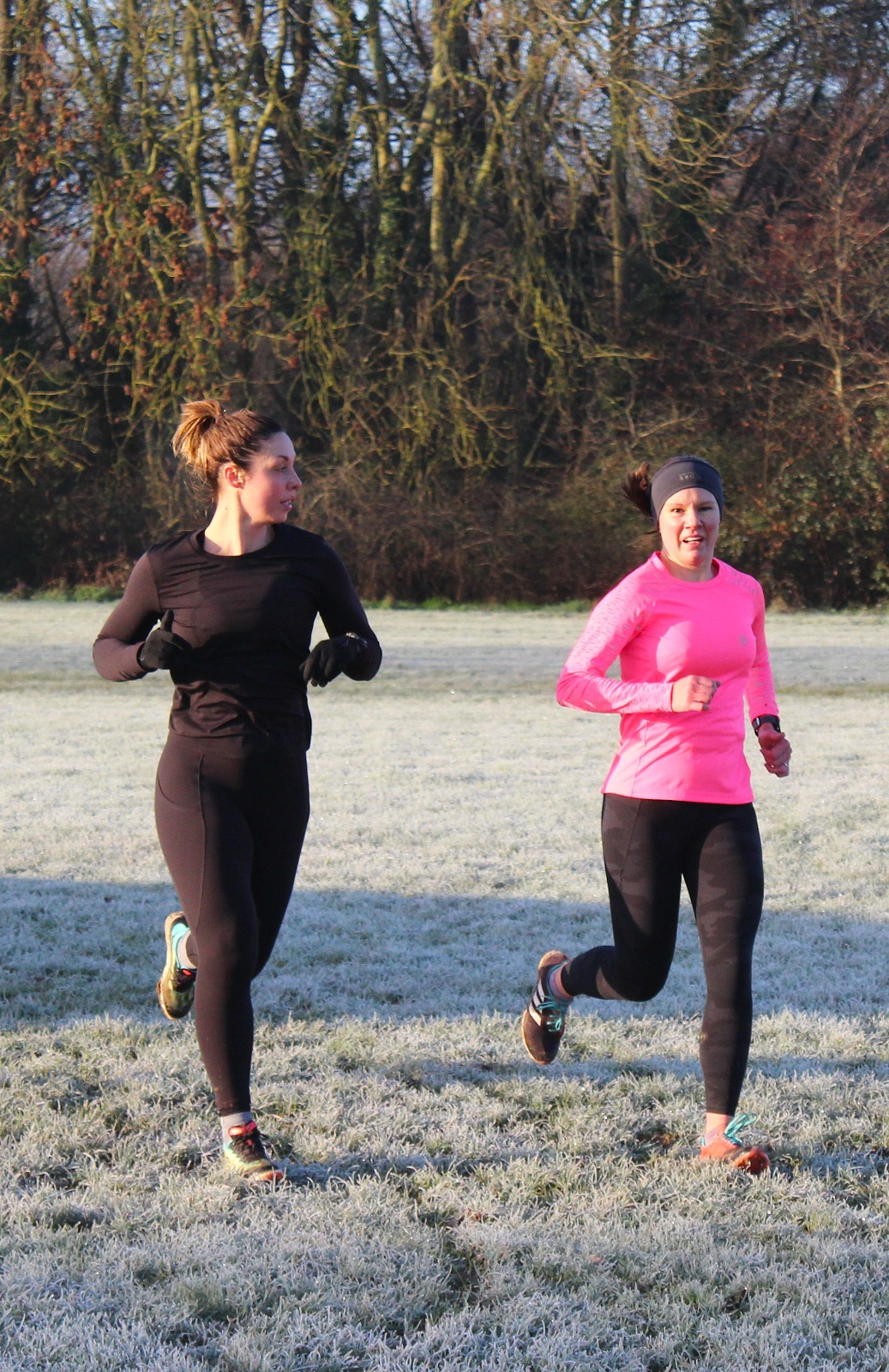 Come along and join us as different groups are put through their paces – it’s a great way to start the weekend, with athletes fully justified in having a bacon-butty and cup of tea from the clubhouse when they are done. Today was frosty and cold to start, with the sun coming through the mist as the morning progressed – a beautiful morning to be out running.