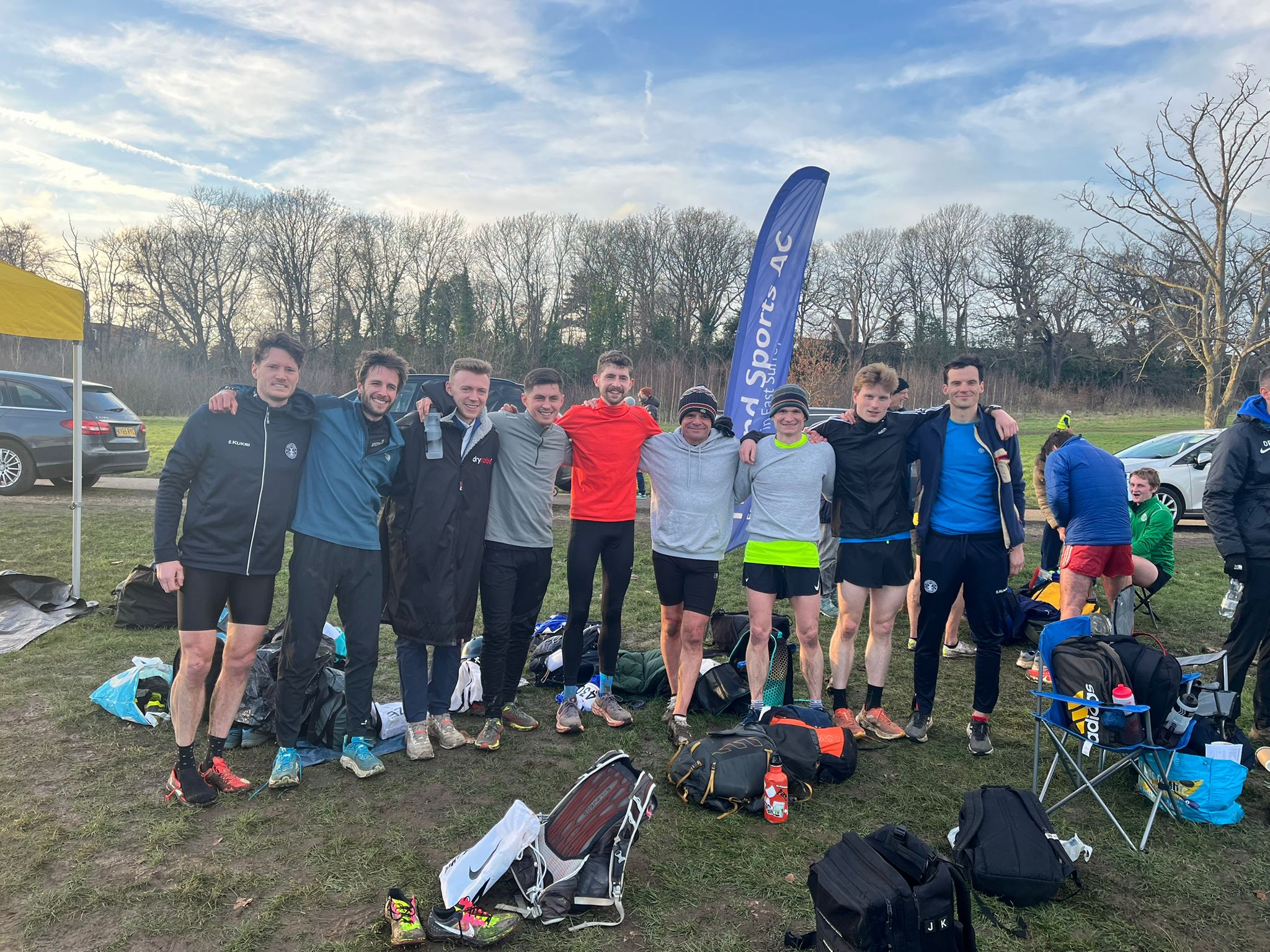 A team of juniors, U20 athletes and senior men travelled to Beckenham Park Place on Saturday for the Southern Counties cross-country Championships. The first time that the senior men have put a full-team out for this event, the group worked hard over the undulating 15 km course which really put athletes through their paces. Almost double the length of their normal cross-country races, the team were led home by Jack Kavanagh who came home in third place. Backing him up were Kieran Barnes (32), Sam Burgoyne (66), Ben Hall (95), Luke Davis (127) and Christian Lee (129) who made up the six-man team and came home in 8th place, taking the scalps of some pretty big teams in the process. Completing the squad from Holland Sports were Lyndon Marfell (225), James Ellis (239) and Tom Thornley (263).