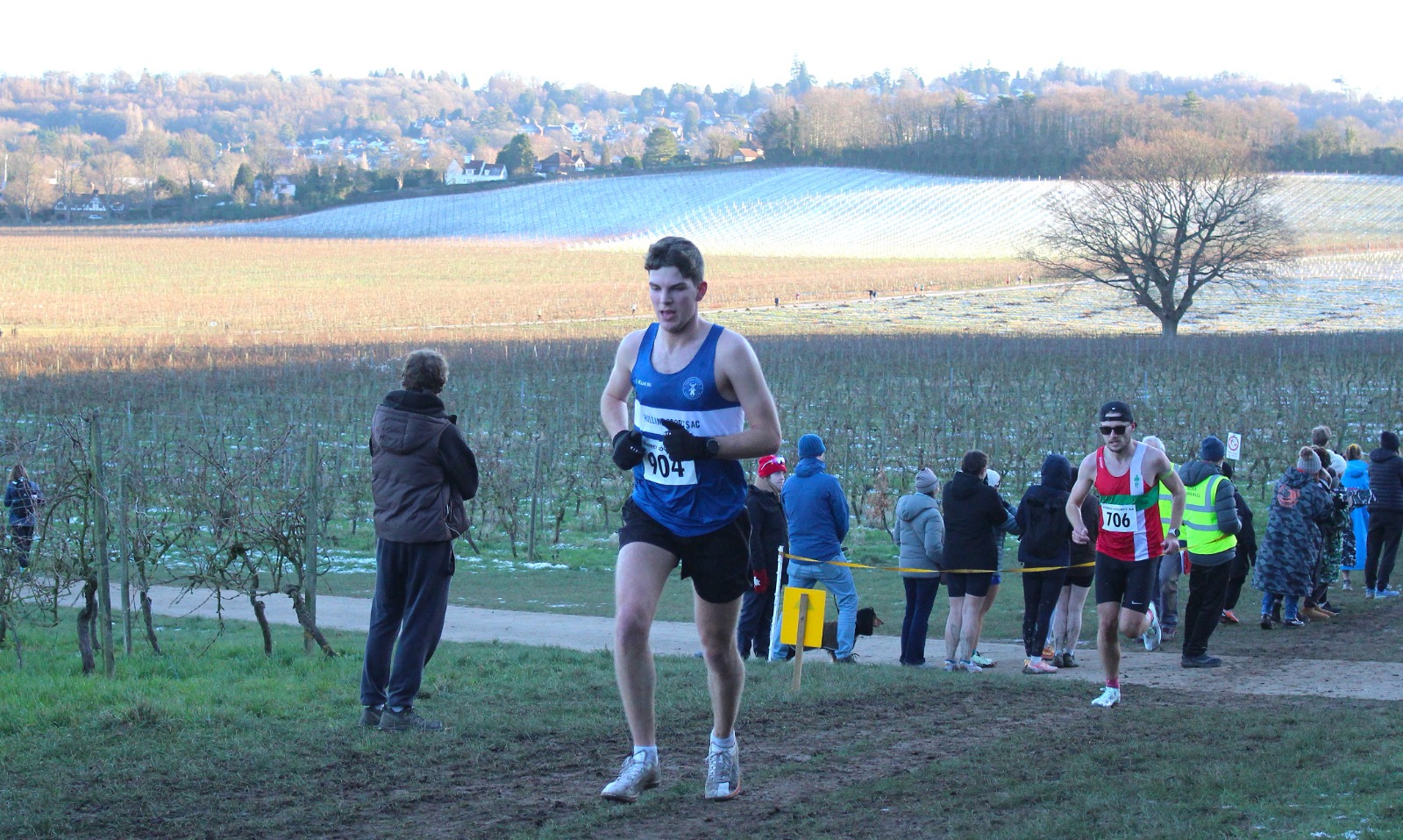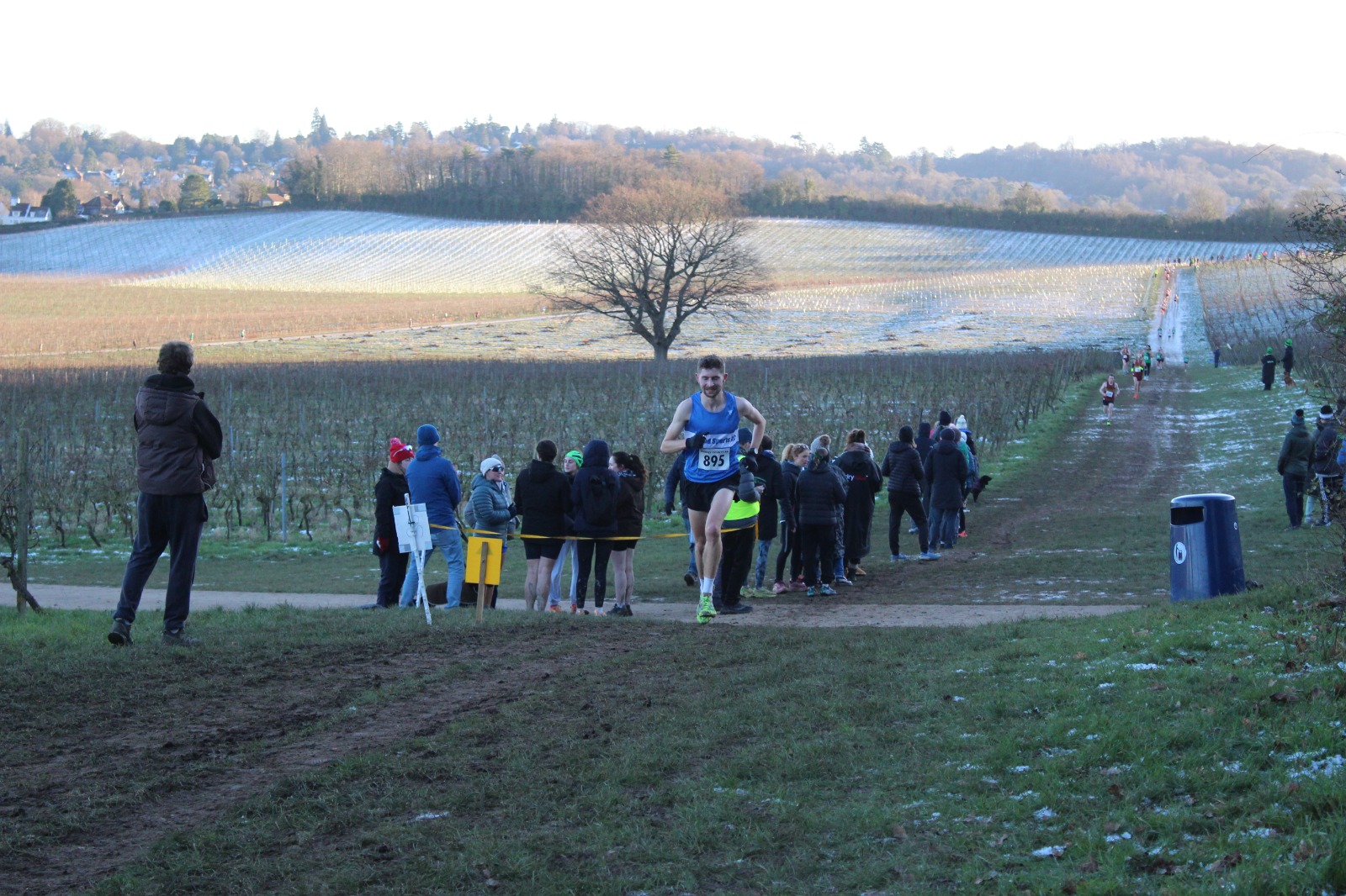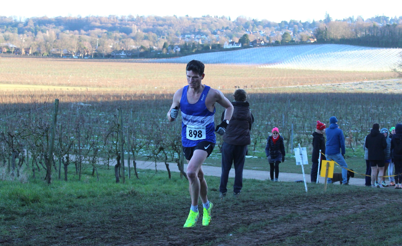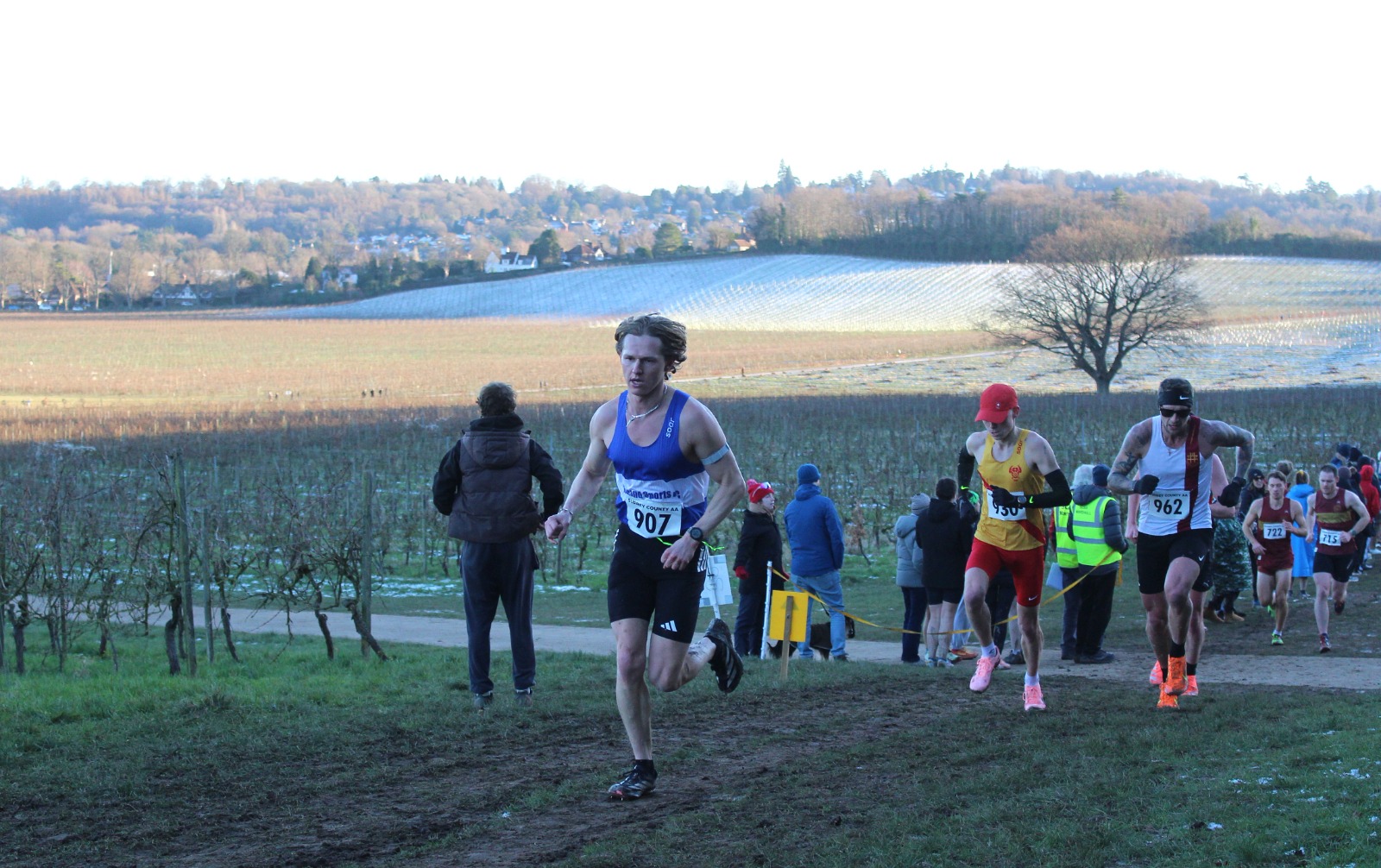 The senior endurance squad were well represented on Sunday at a frosty and cold Denbies Wine Estate in Dorking. Around a hilly course that took athletes up to the top of the vinyards before dropping them back down to the main building itself, the ground was muddy where it had been in sunshine and frozen-hard where the low winter sun had not reached above the surrounding hills.