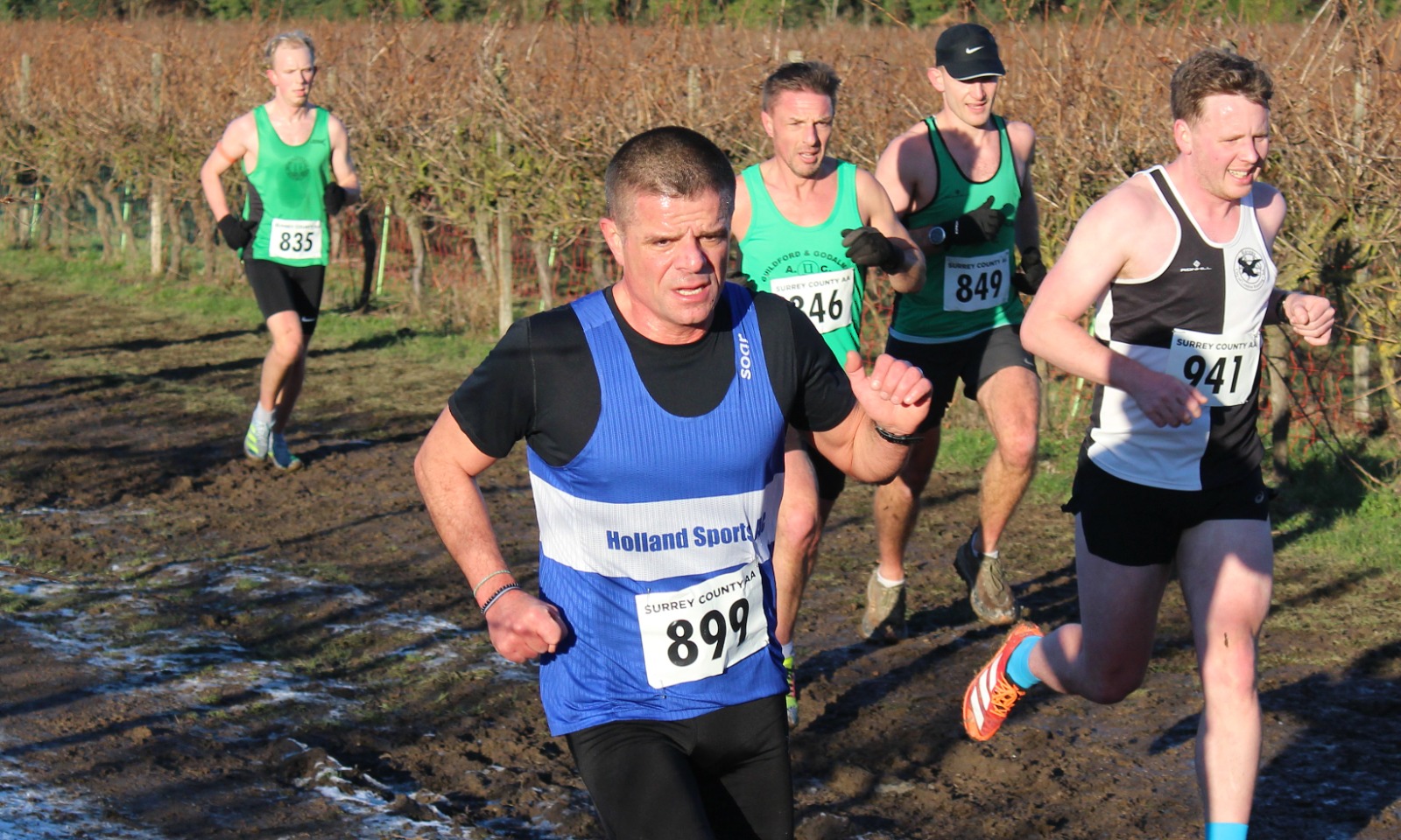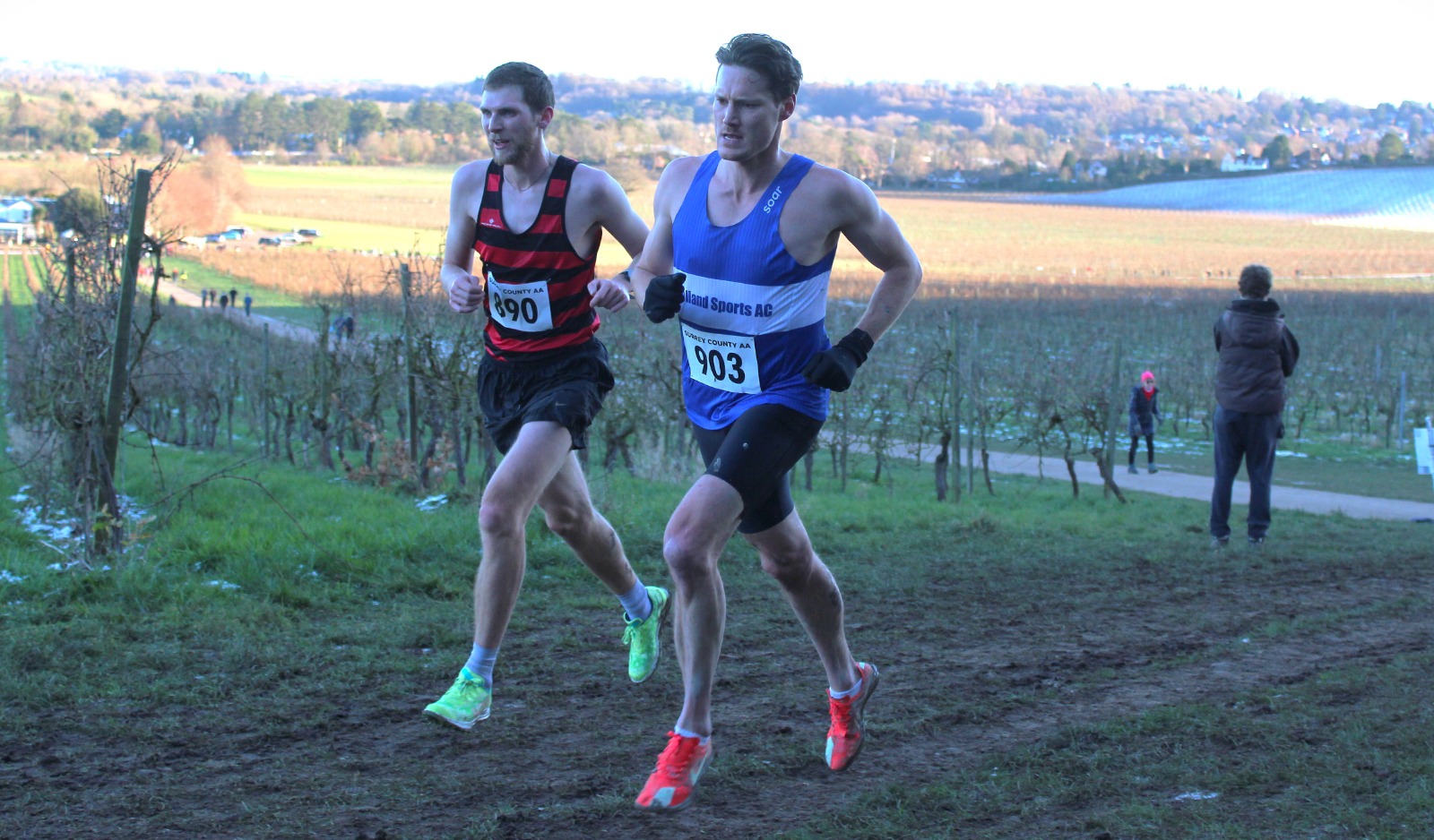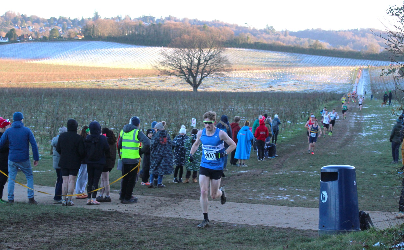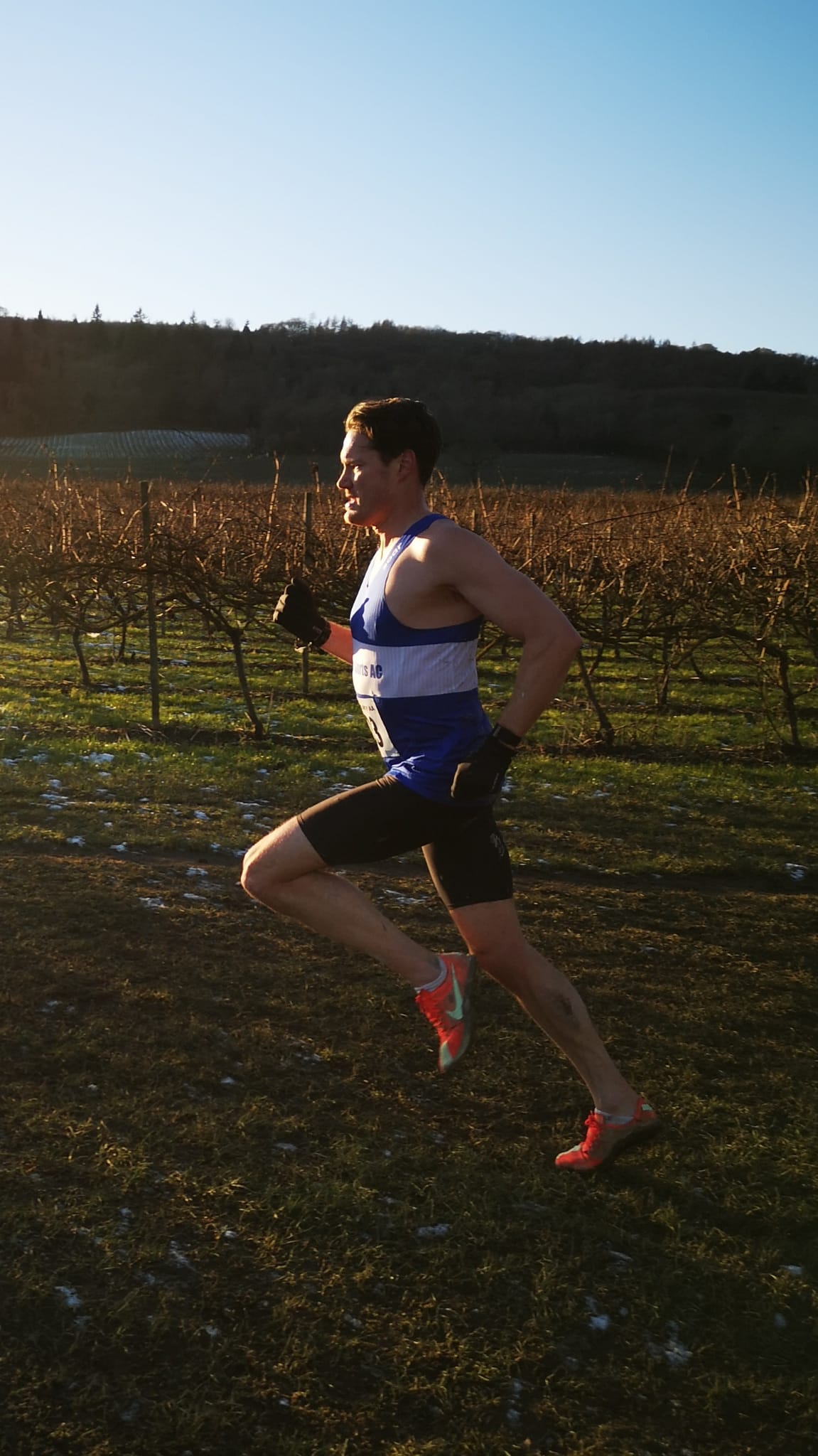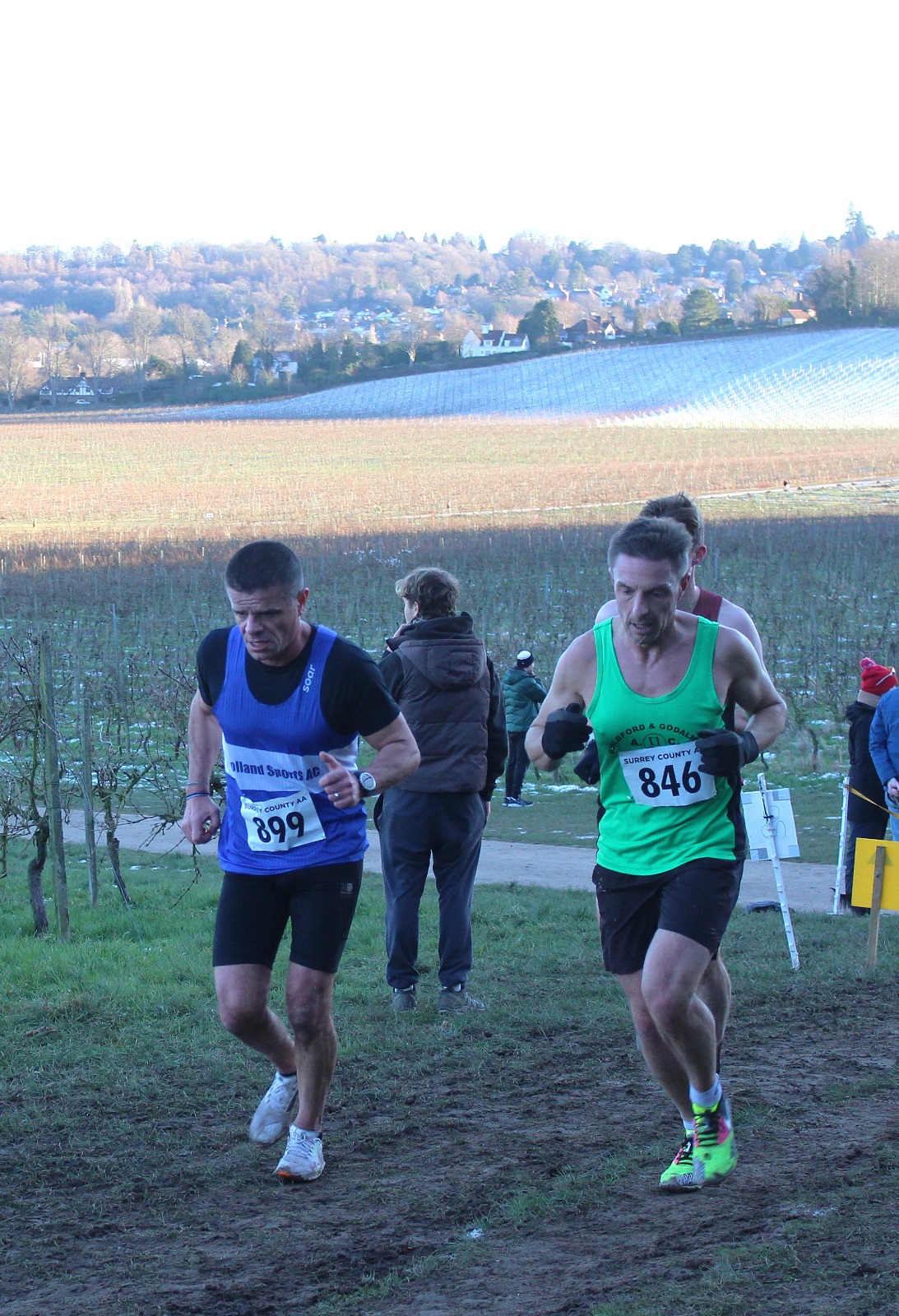 The senior endurance squad were well represented on Sunday at a frosty and cold Denbies Wine Estate in Dorking. Around a hilly course that took athletes up to the top of the vinyards before dropping them back down to the main building itself, the ground was muddy where it had been in sunshine and frozen-hard where the low winter sun had not reached above the surrounding hills.